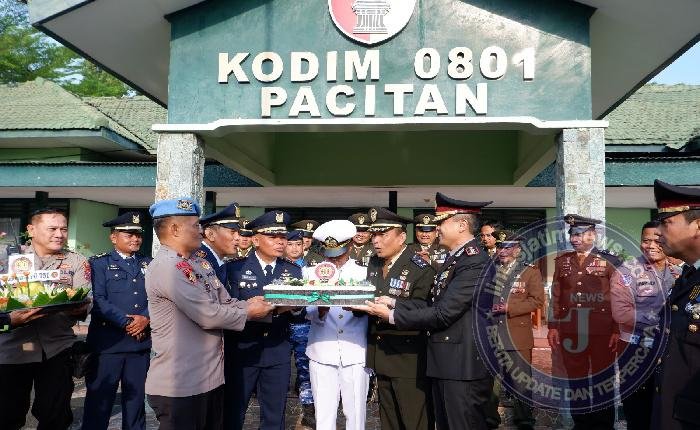 Kegiatan tersebut disambut Dandim 0801/Pacitan yang kali ini di wakili Kasdim 0801/Pacitan Mayor Inf Muhajir berserta perwakilan TNI AL, Perwakilan TNI AU serta seluruh Perwira staf Kodim 0801/Pacitan di lanjutkan acara potong tumpeng sederhana oleh Kapolres Pacitan AKBP Ayub Diponegoro Azhar, S.H., S.I.K., M.I.K dan di berikan kepada Kasdim mewakili TNI AD, AL dan juga AU sebagai simbolis dan bentuk sinergitas TNI – POLRI.